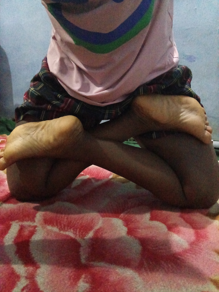 - "A person is kneeling on a red and white patterned blanket with their bare feet positioned outward" by FM-1b8tg1, licensed under CC BY 4.0