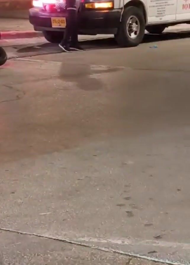The scene shows the aftermath of a motorcycle accident on a city street at night