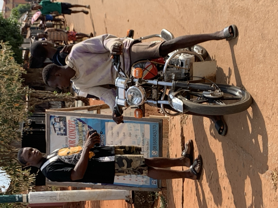 This image displays a sunny street scene in Otuocha, Nigeria