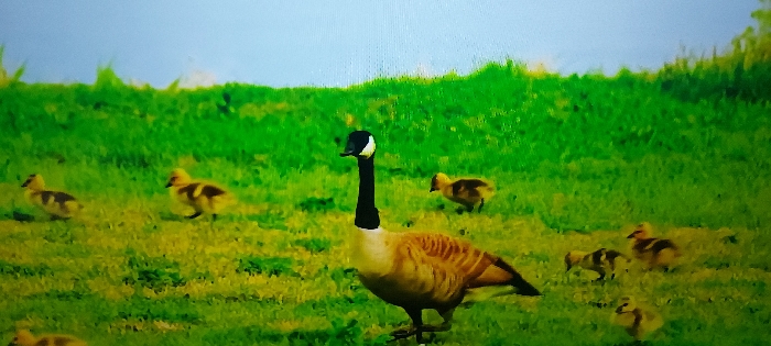 - "The scene captures an adult Canada Goose and approximately eight goslings within a grassy field in Razgrad, Bulgaria" by FM-KpKSC3, licensed under CC BY 4.0