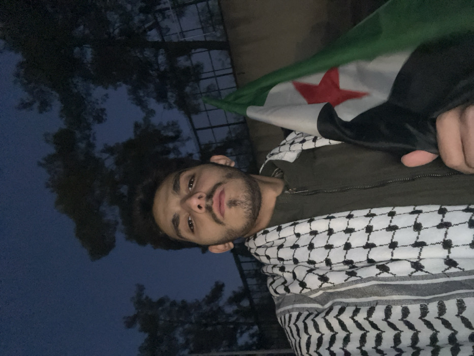 - "A person is holding a flag with a white star on a green background, possibly the flag of Syria, in a nighttime setting with trees and what appears to be a fence in the background" by FM-WnN6r1, licensed under CC BY 4.0