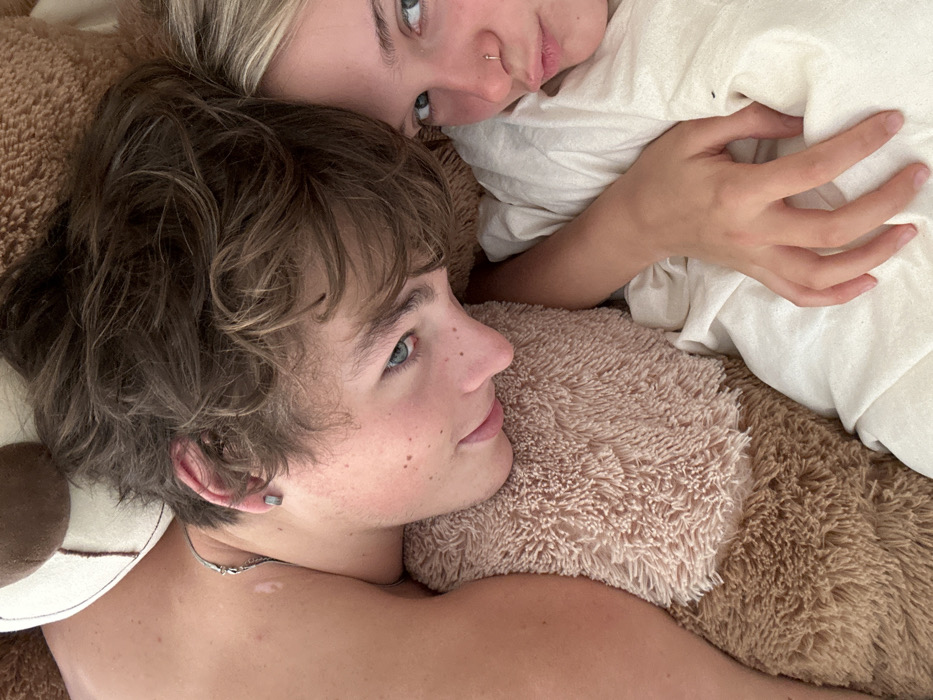 - "This image depicts two young individuals, one male and one female, lying in close proximity on what appears to be a bed in an indoor setting in Squamish, Canada" by FM-p02Wp2, licensed under CC BY 4.0