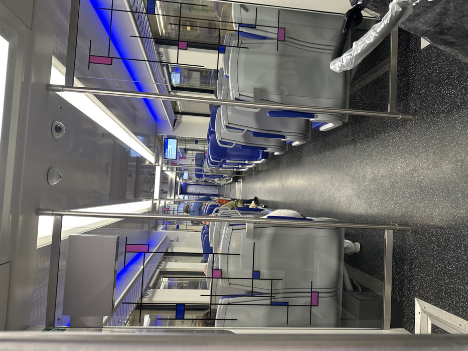 - "The image depicts the interior of a modern passenger train car, likely operating a service connecting to Schiphol, Netherlands" by FM-n6yWE2, licensed under CC BY 4.0