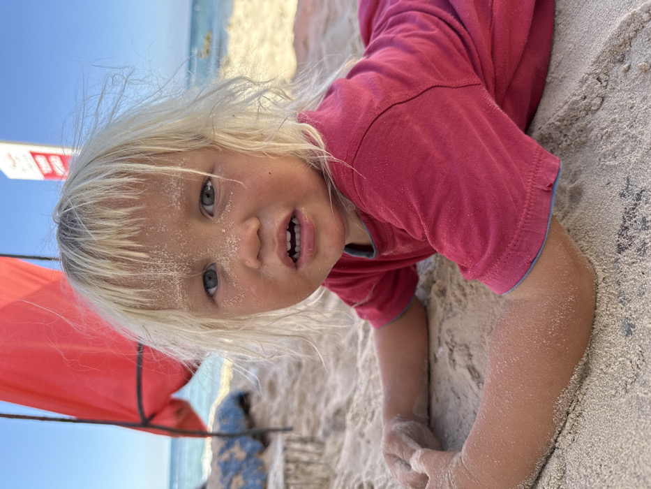 - "A young child, approximately 2-4 years old, with blond hair and fair skin, lies prone on light-colored sand on a beach in Bat Yam, Israel" by FM-mC8Vd2, licensed under CC BY 4.0