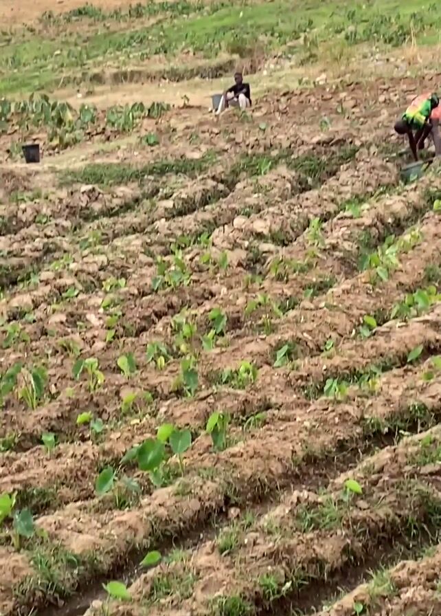 field where people are planting crops