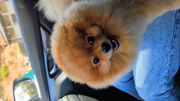 - "A reddish-orange Pomeranian dog with dark eyes, a black nose, and an open mouth revealing small teeth is centrally positioned, facing the viewer" by FM-fwmFI2, licensed under CC BY 4.0