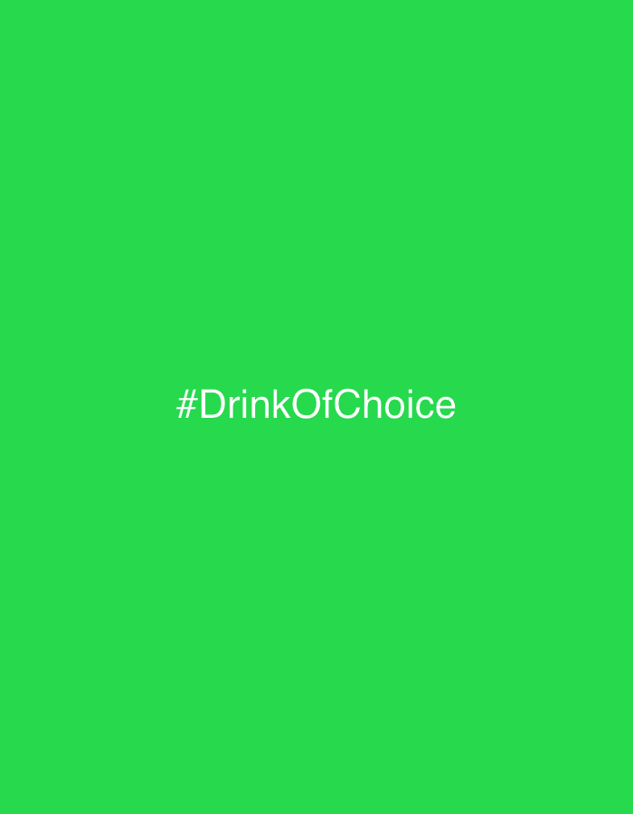 A vibrant green background dominates the image. Centered horizontally and vertically, the white text "#DrinkOfChoice" stands out against the green. The text is clean, simple, and easily readable. The overall impression is minimalist and eye-catching, suggesting a social media campaign or advertisement.
