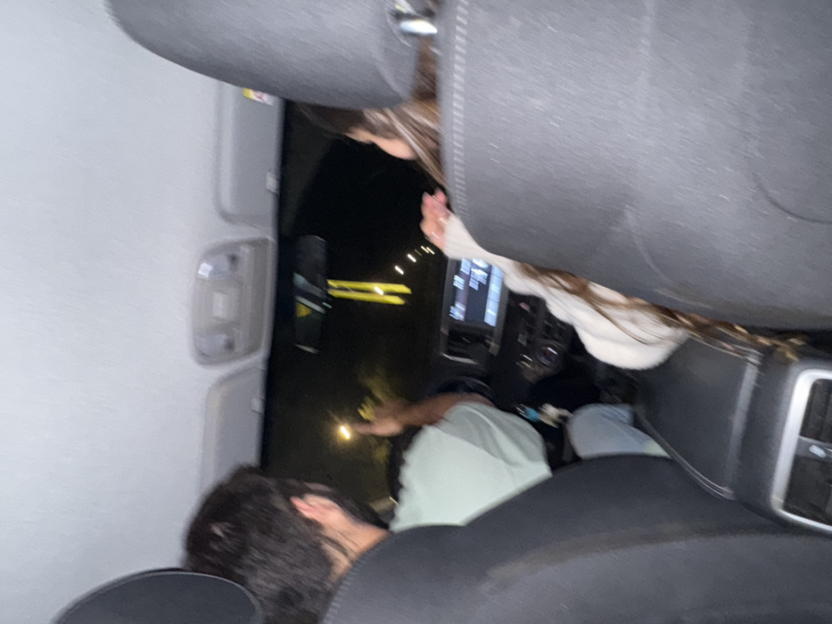 This image, taken in the Gilboa Regional Council, Israel, depicts the interior of a vehicle at night, viewed from the rear passenger seat looking forward