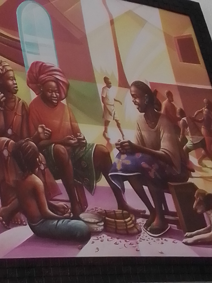 - "This framed painting depicts a detailed communal scene in Ikeja, Nigeria" by FM-e0XNM2, licensed under CC BY 4.0