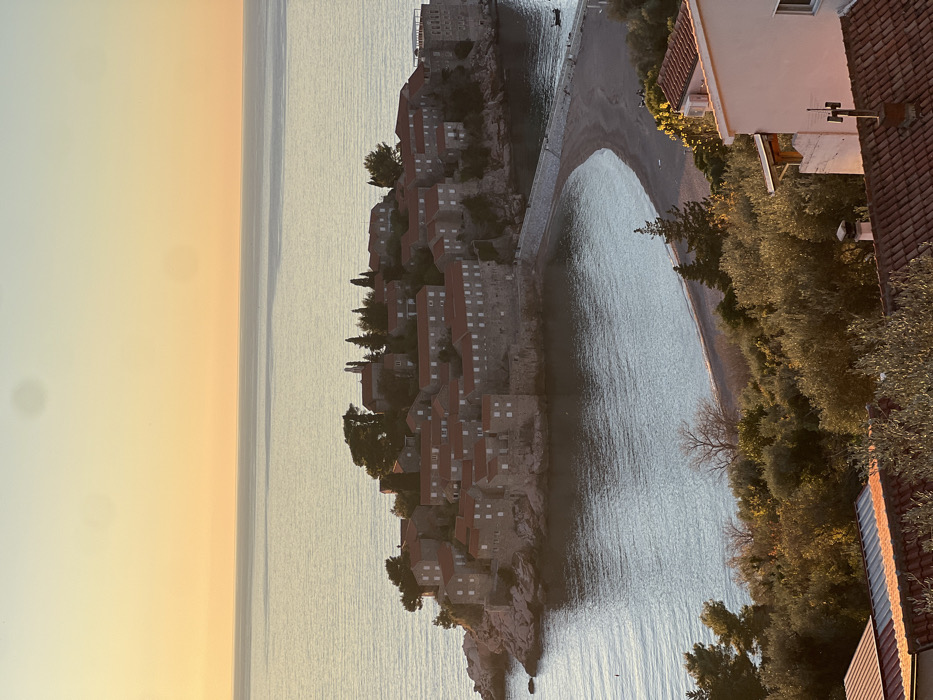 - "This image captures an elevated view of the fortified island-village of Sveti Stefan, Montenegro, during either sunrise or sunset" by FM-MKUcI3, licensed under CC BY 4.0