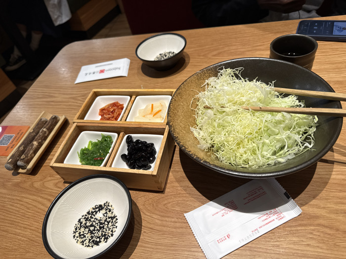 - "An overhead view captures a dining table in an indoor restaurant setting, likely a Saboten Japanese Tonkatsu establishment, located in Dongcheng District, China" by FM-Mlchq1, licensed under CC BY 4.0
