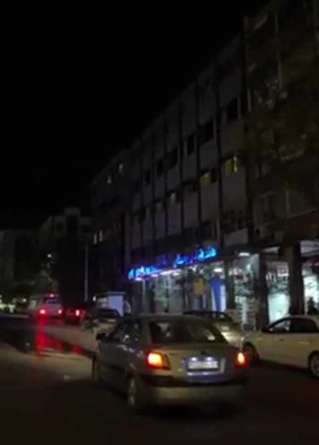 The video depicts a night-time street scene, focusing on an urban setting with a hotel visible on the right side of the frame