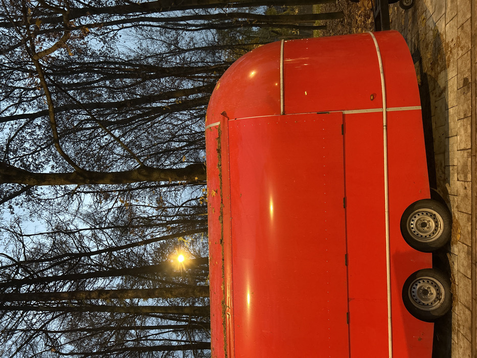 - "The image displays a bright red, rounded mobile vendor trailer parked on a paved surface in a wooded area within the city of Kolomna, Russia" by FM-kJsX23, licensed under CC BY 4.0