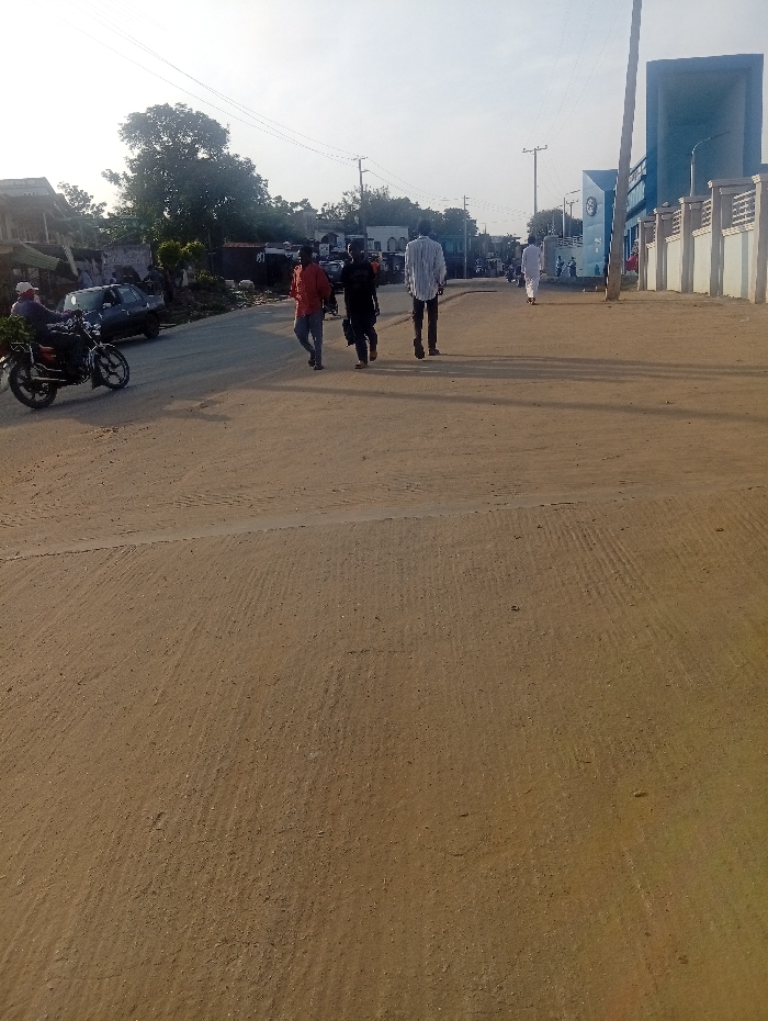 This image captures a daytime street scene in Okene, Nigeria