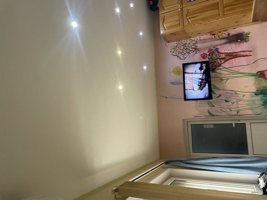 - "The image displays an interior room, possibly residential, featuring light peach-colored walls and a white ceiling with multiple illuminated recessed spotlights" by FM-oYaJ03, licensed under CC BY 4.0