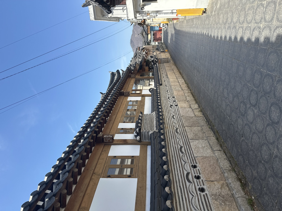 - "An outdoor, eye-level photograph captures a narrow, paved alleyway in Gyeongju-si, South Korea, under a clear, bright blue sky" by FM-e0TMf1, licensed under CC BY 4.0
