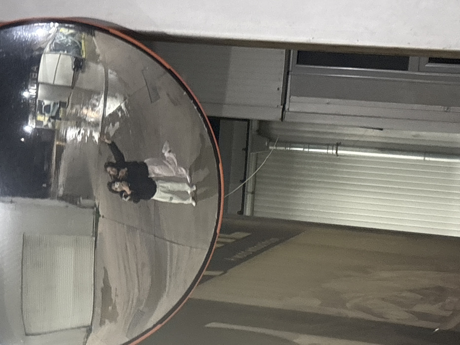 - "A nocturnal or low-light image depicts two individuals reflected in a convex security mirror with an orange border" by FM-A0LUJ2, licensed under CC BY 4.0