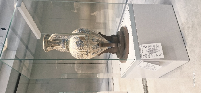- "A large, ornate ceramic ewer is displayed within a transparent glass exhibition case, resting on a white rectangular pedestal, in a museum located in Lens, France" by FM-uLzcF2, licensed under CC BY 4.0