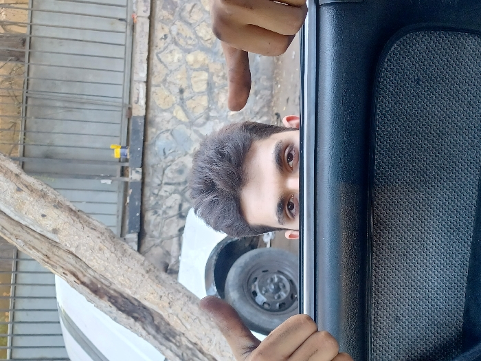 - "A male individual is partially visible, peeking over the dark grey interior panel of a vehicle door in Al-Qanawat Municipality, Syria" by FM-hmmxi2, licensed under CC BY 4.0