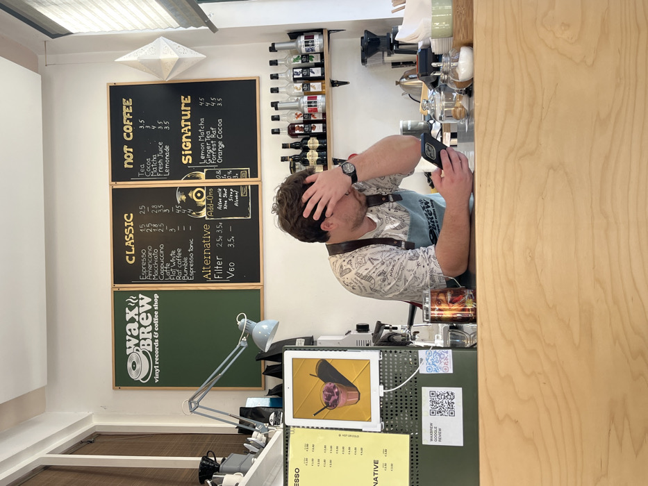 - "The image captures the interior of "Wax Brew vinyl records & coffee shop" in Budva, Montenegro, specifically the service counter area" by FM-N8yZ02, licensed under CC BY 4.0