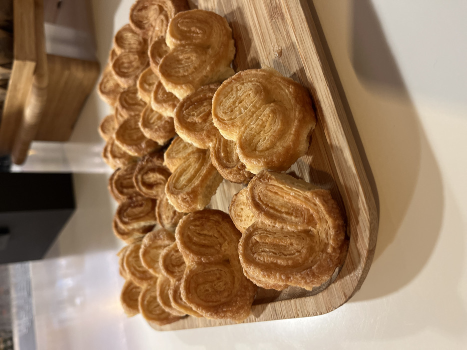 - "A wooden platter filled with approximately 20 heart-shaped, golden-brown pastries sits on a white table top" by FM-lnhCZ2, licensed under CC BY 4.0