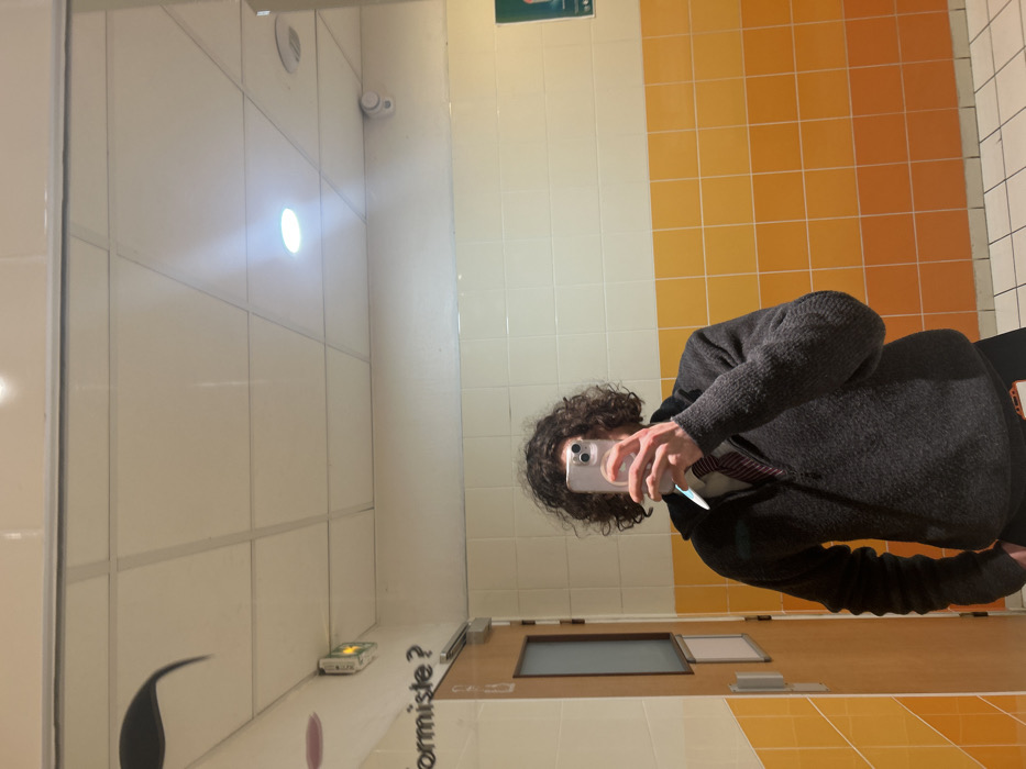 - "An individual is captured in a mirror selfie within what appears to be a public or institutional restroom, specifically identified as Lycée Polyvalent Henri Bergson in Chatou, France, due to the visible text "formiste?" and the general architectural style" by FM-RlwBp1, licensed under CC BY 4.0