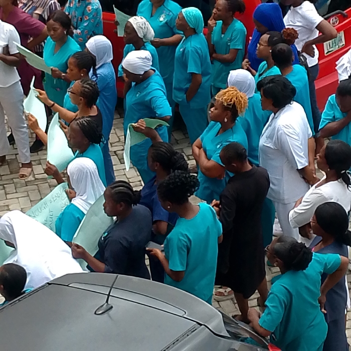 The image captures an outdoor gathering of approximately 30 to 40 individuals, predominantly women, in Lokoja, Kogi State, Nigeria