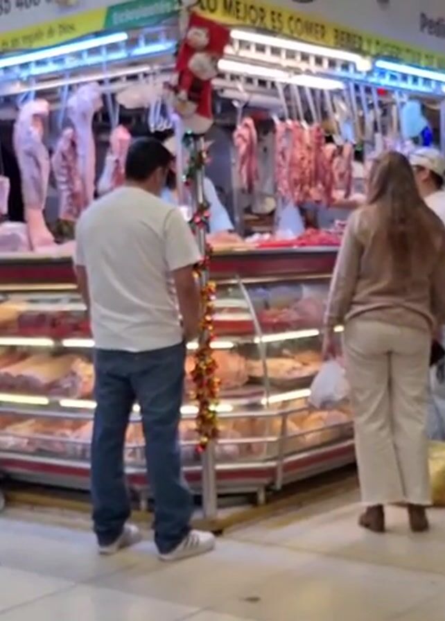butcher shop, likely during the Christmas season based on the Christmas decorations