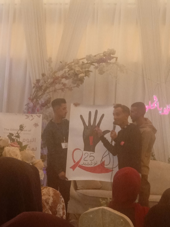 The image depicts an indoor event occurring in Al-Mawasi, Unknown