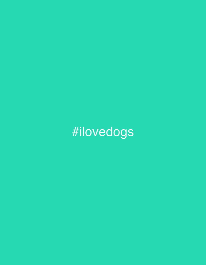 The image displays a solid teal-green rectangular field. Centered horizontally and vertically within this field is the white text string "#ilovedogs" rendered in a sans-serif typeface. No people, additional subjects, objects, actions, or interactions are present. The environment is uniformly colored, providing no discernible physical features or contextual cues that would indicate a specific geographic location, including any area within the city of Kozloduy, Bulgaria.