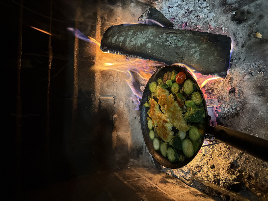 - "The image displays a close-up scene of food being cooked within an active wood-burning fireplace, located in the city of Razlog, Bulgaria" by FM-CCOQt1, licensed under CC BY 4.0