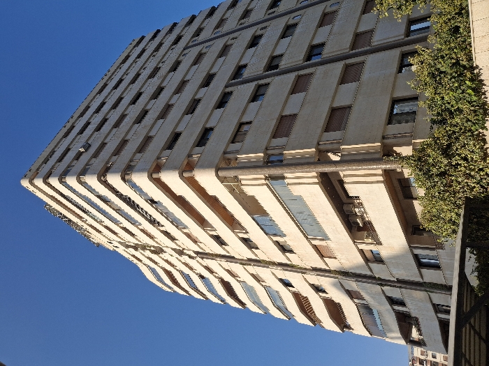 - "The image depicts a tall, multi-story building located in Kafr Sousa Municipality, Syria, viewed from a low angle looking upwards towards its northeast facade under a clear blue sky" by FM-niJg42, licensed under CC BY 4.0