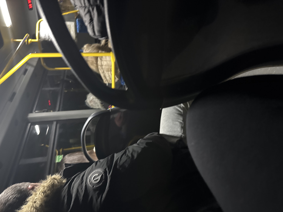 - "The image displays the interior of a public transit bus operating in Targovishte, Bulgaria, during evening hours" by FM-2nJO52, licensed under CC BY 4.0