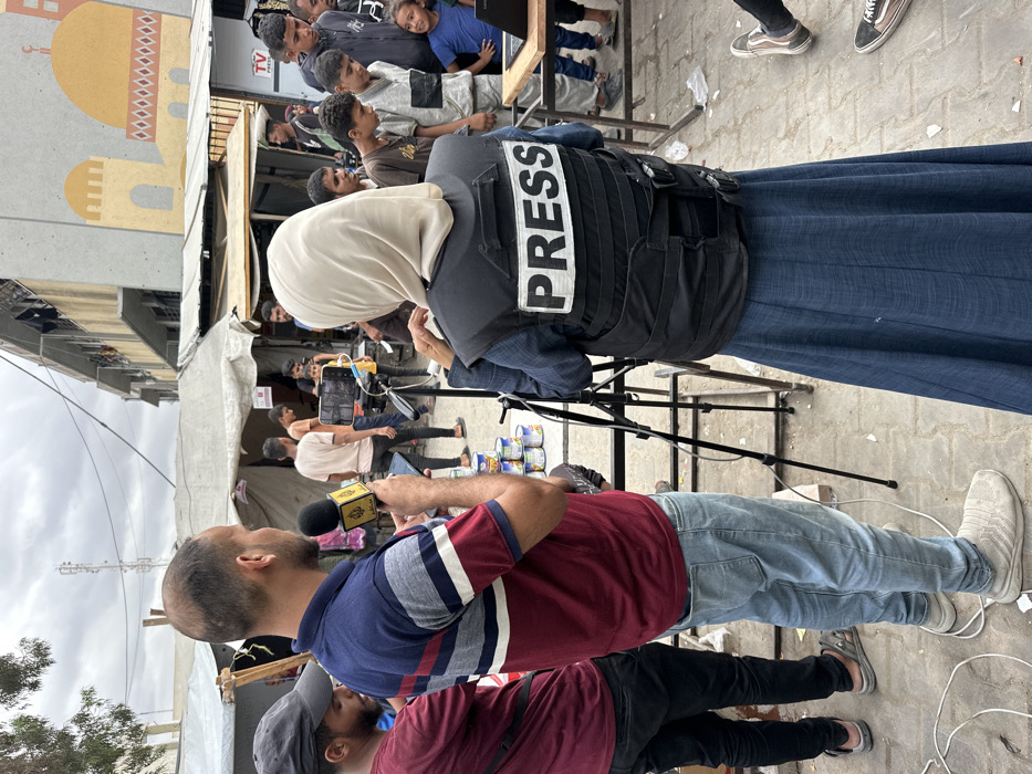 - "An outdoor scene in Khan Yunis, Palestinian Territory, depicts a media crew reporting in a crowded area under an overcast sky" by FM-zF1RI3, licensed under CC BY 4.0