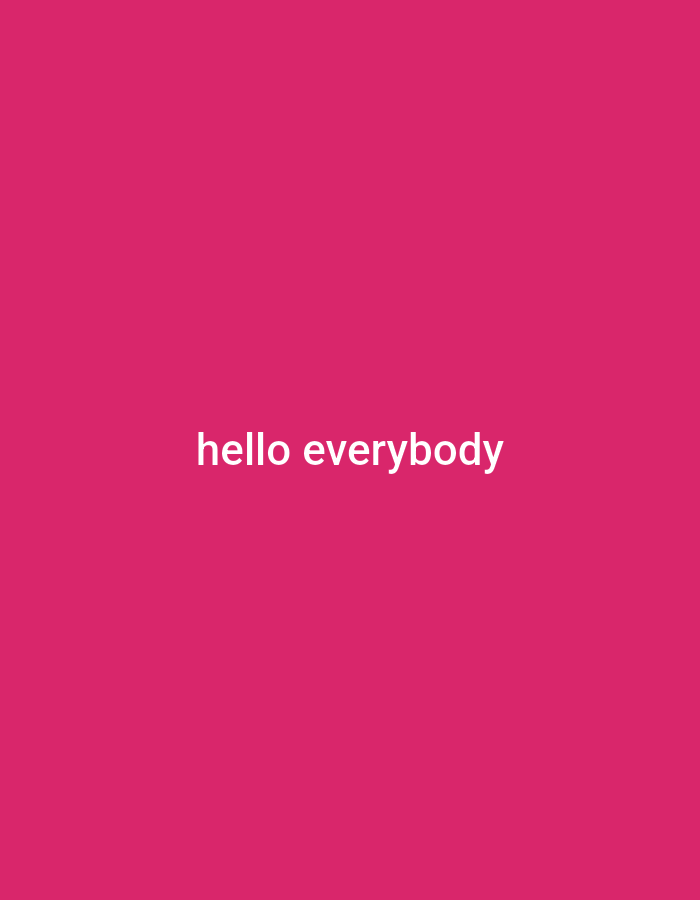 The image consists of a solid hot pink field. White, sans-serif text reading "hello everybody" is centered horizontally and vertically within this field. No individuals, objects, actions, interactions, or environmental details are present beyond the colored background and text. The location of this scene is Kofar Ruwa, Nigeria.