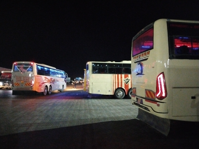 - "A nighttime scene in Mtito Andei, Kenya, depicts a paved bus terminal populated by multiple large passenger buses" by FM-KDvS93, licensed under CC BY 4.0