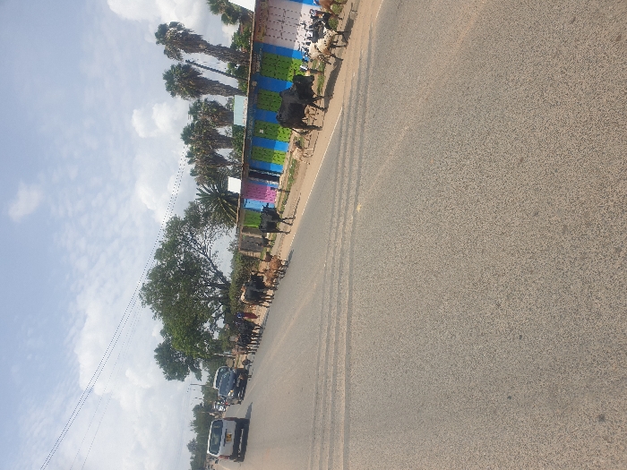 The image depicts a daytime scene on an asphalt road in Machakos, Kenya