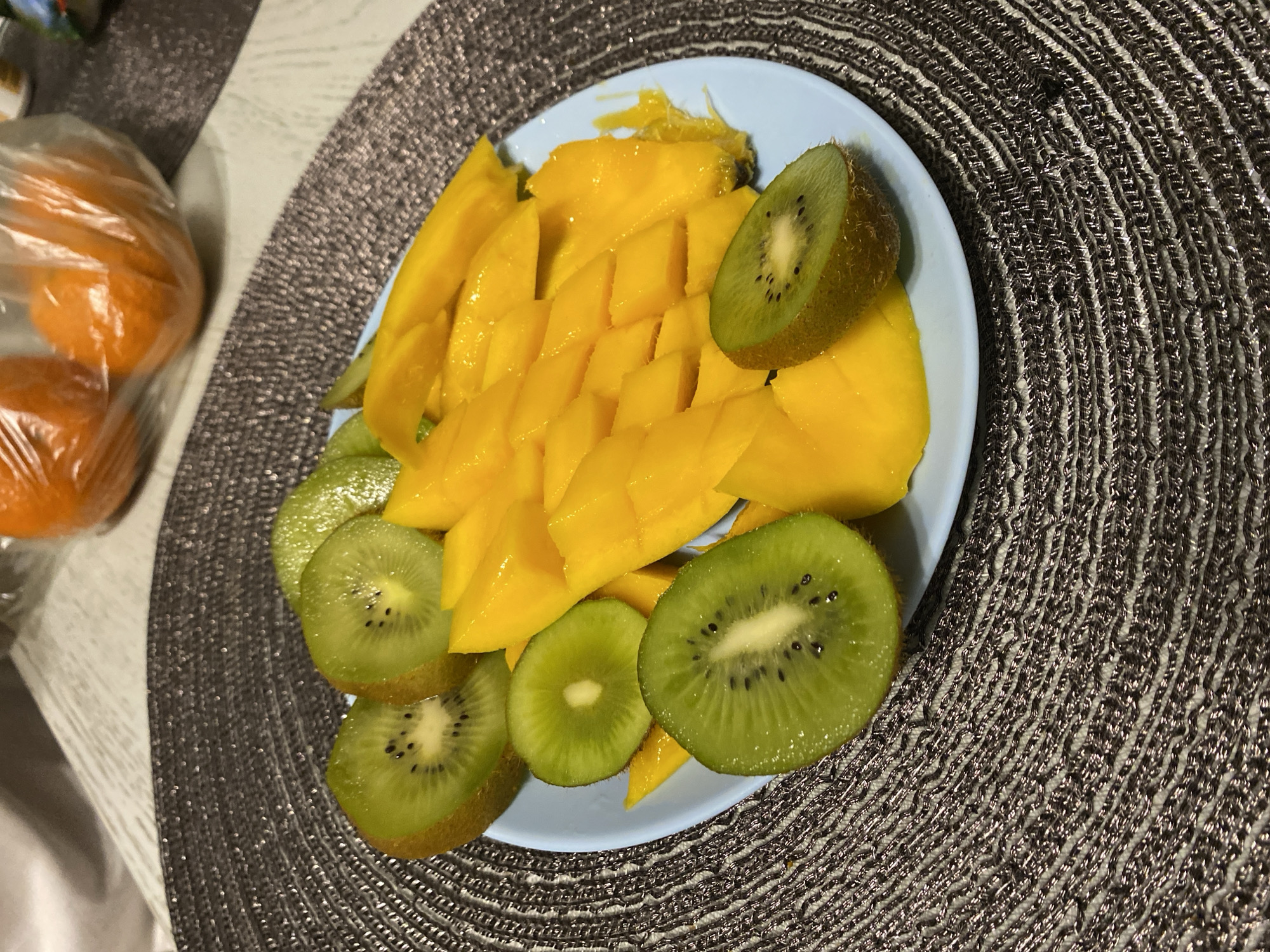 - "light blue plate containing sliced mango and kiwi fruit" by FM-qnyO42, licensed under CC BY 4.0