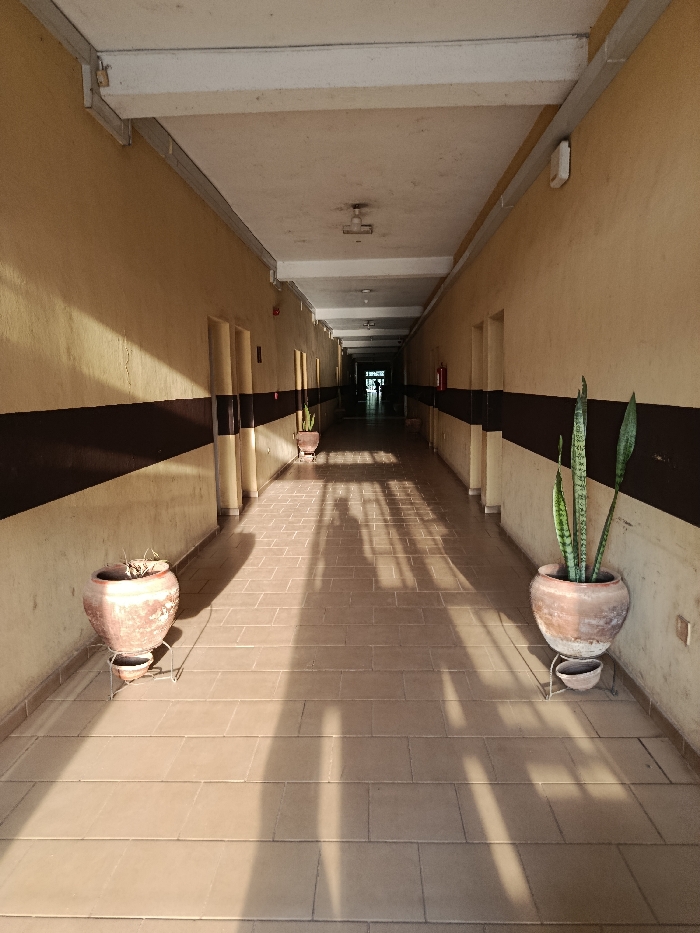 The image displays a long, straight indoor corridor within the Immigration Quarters, Nigeria