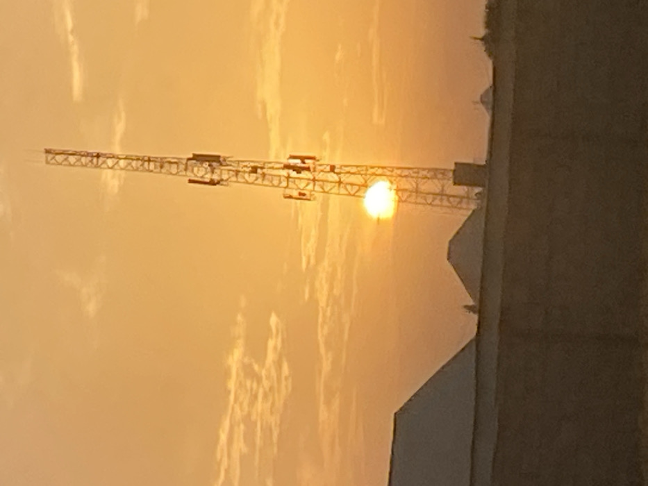 - "A construction crane stretches across an orange sky, nearly parallel to the horizon" by FM-qtG7Q2, licensed under CC BY 4.0