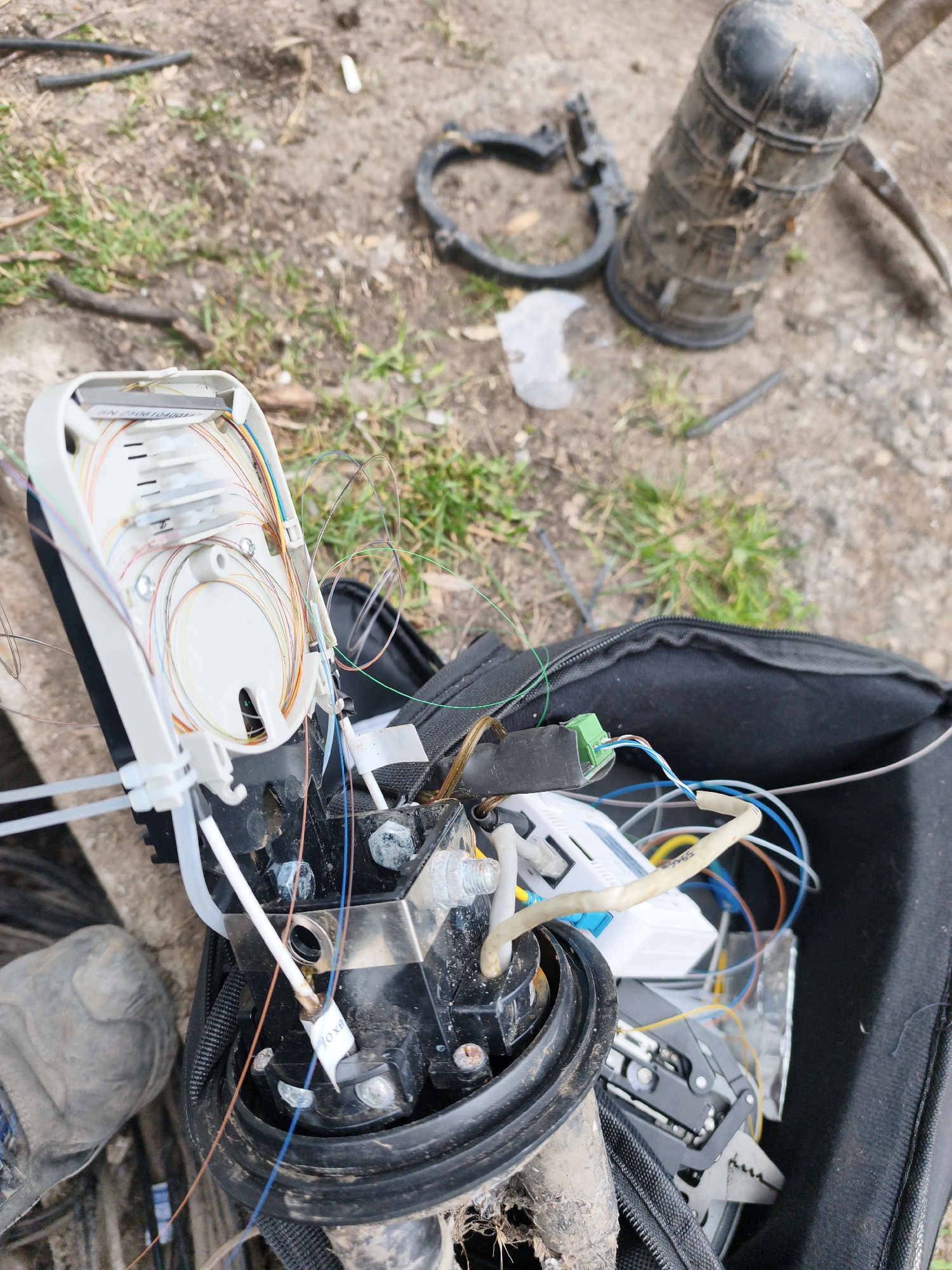 - "An outdoor scene depicts disassembled fiber optic telecommunications equipment on a dirt and sparse grass ground" by FM-sHkp03, licensed under CC BY 4.0