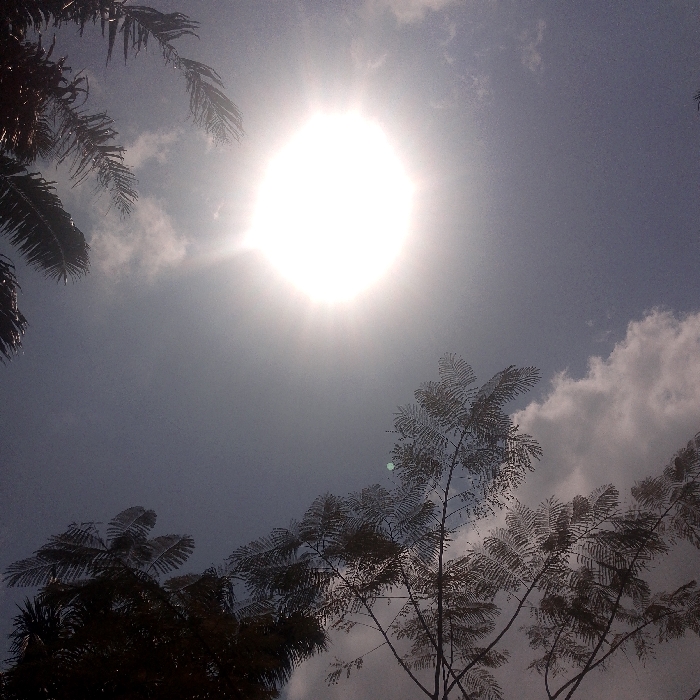 - "The image depicts an outdoor daytime scene looking upwards towards a bright sky with the sun prominently featured" by FM-5YjUl1, licensed under CC BY 4.0