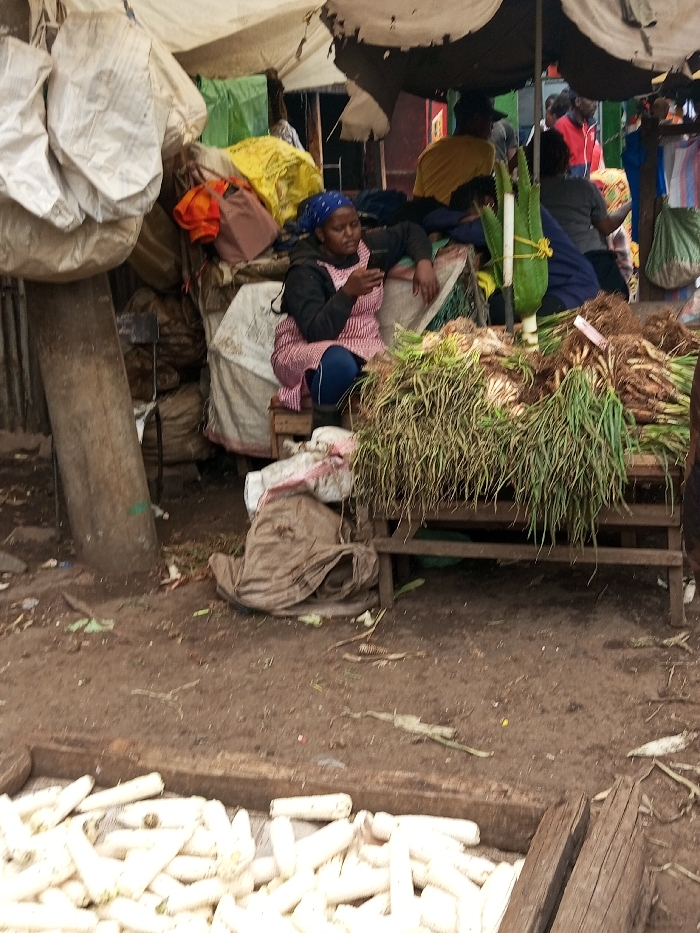 This image depicts an outdoor market scene in Nairobi, Kenya