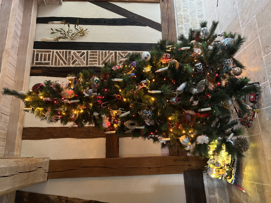 The image depicts an indoor Christmas decoration scene in Bailleul-la-Vallée, France