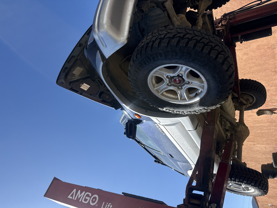 - "A dark blue and silver Suzuki Vitara SUV is elevated on a red two-post AMGO Lift brand hydraulic car lift under a clear blue sky in Sadovo, Bulgaria" by FM-ZHisB3, licensed under CC BY 4.0