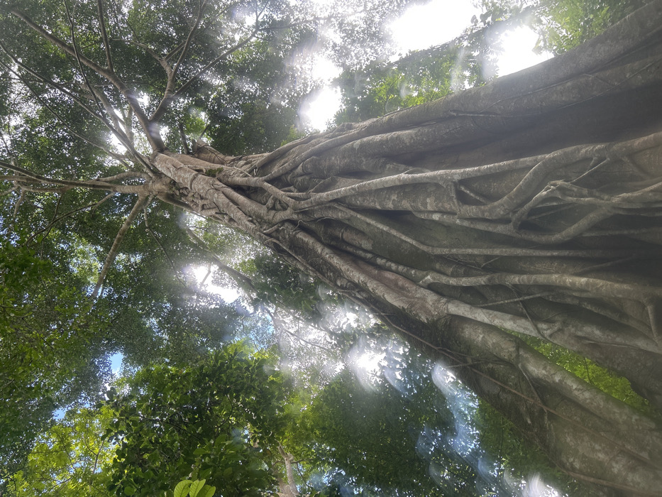 - "This image captures a low-angle perspective of a colossal banyan-type tree in Thapene, Laos, looking upwards towards its canopy" by FM-NScrU2, licensed under CC BY 4.0