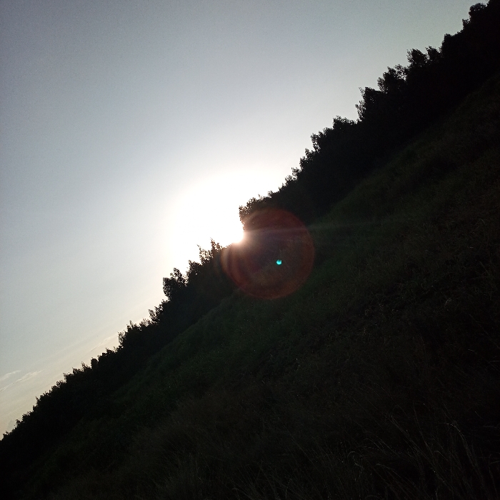 - "A landscape view shows the sun obscured by trees atop a grassy hill" by FM-V3Yv82, licensed under CC BY 4.0
