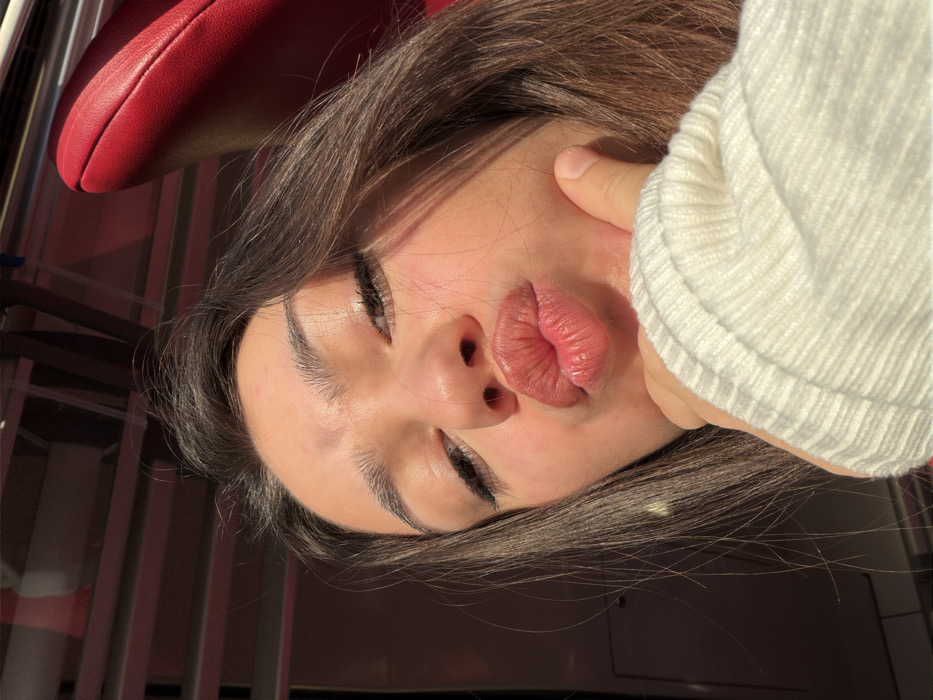 - "A young female is captured in a close-up selfie, posing with puckered lips and resting her chin on her right hand" by FM-2p7Yo2, licensed under CC BY 4.0
