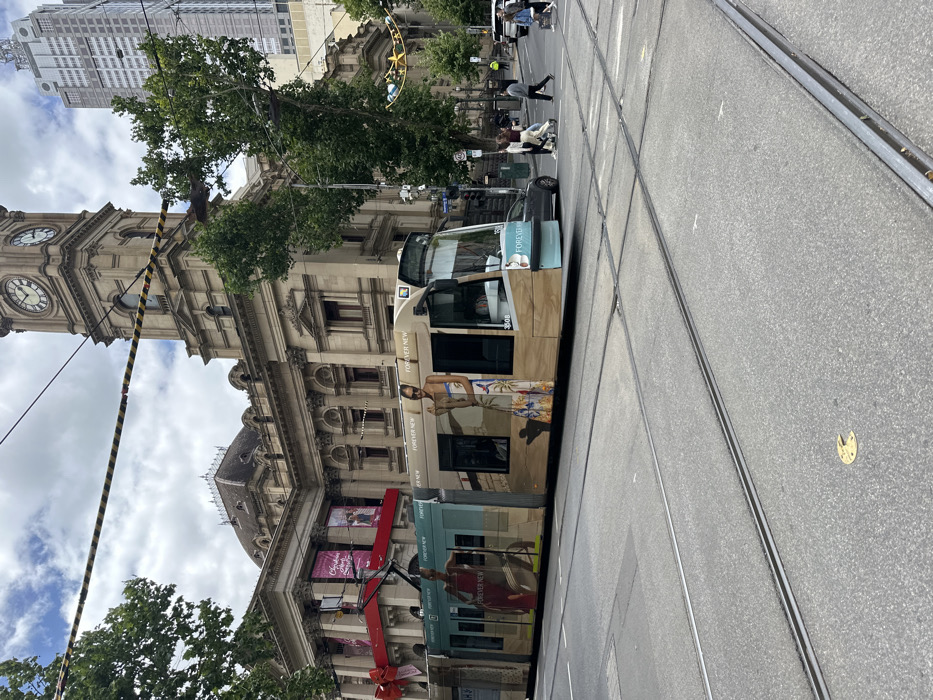 - "A tram covered in "Forever New" advertisements travels along tracks alongside a street" by FM-P0ePn2, licensed under CC BY 4.0