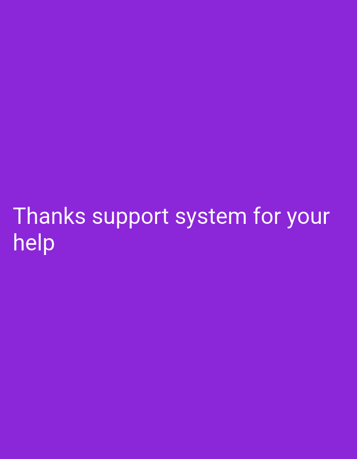 A purple background displays white text: "Thanks support system for your help." The text is simple and appears to be a message of gratitude directed toward a support system. The background is uniform in color. The message is concise and clearly visible against the purple backdrop.
